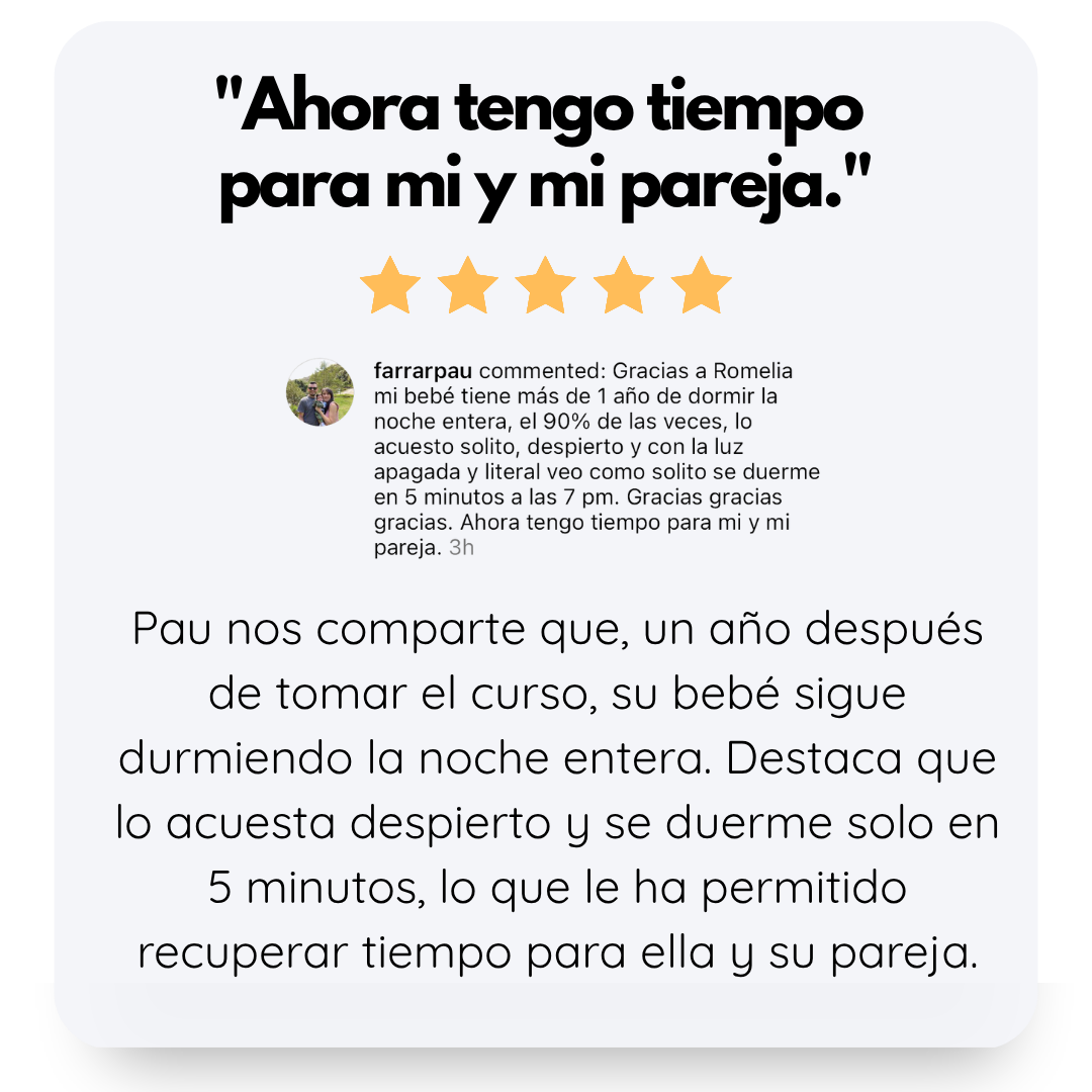 Herramientas y Recursos Descargables: La guía completa del curso en PDF (tu "plan de bolsillo"), bitácoras de sueño y todas las plantillas que necesitas para facilitar el proceso.